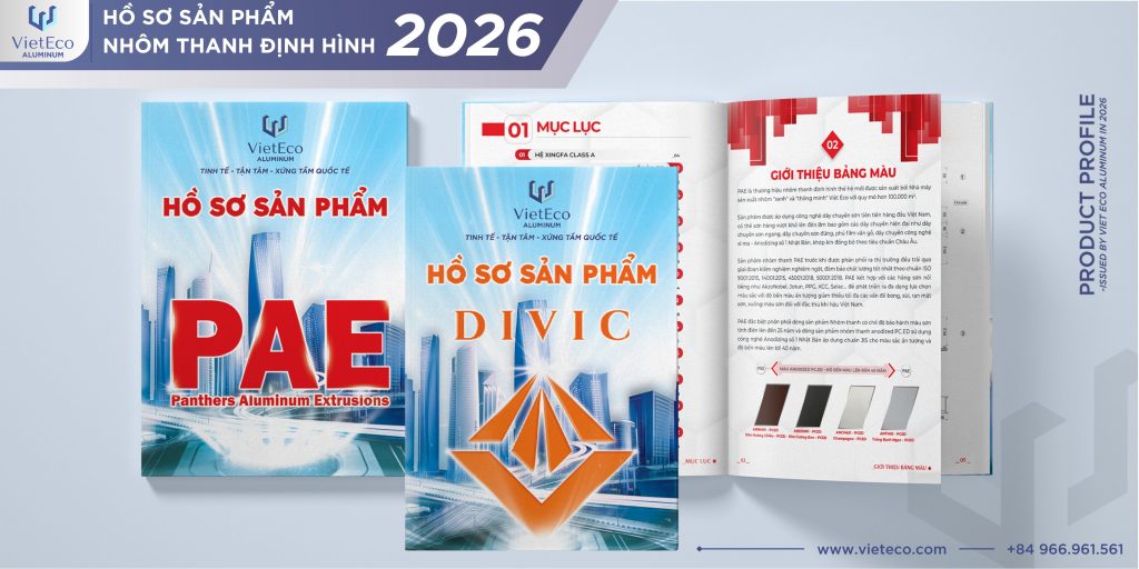 VIỆT ECO ALUMINUM -HỒ SƠ SẢN PHẨM NHÔM THANH ĐỊNH HÌNH 2026- —————————— Từ tổ hợp nhà máy sản xuất quy mô hơn 100,000 m2 XANH, THÔNG MINH với các công nghệ, dây chuyền hiện đại, tiến tiến, Việt Eco Aluminum hân hạnh giới thiệu PHIÊN BẢN 20206 HỒ SƠ SẢN PHẨM của 2 thương […]