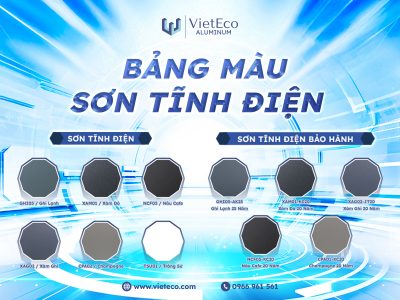 Một trong các yếu tố khẳng định ưu điểm của sản phẩm nhôm thanh từ Nhà máy sản xuất nhôm Việt Eco là sự đa dạng về màu sơn và độ bền lớp sơn vượt trội. Đặc biệt, các sản phẩm sơn tĩnh điện là tinh hoa đúc kết từ đa yếu tố:
