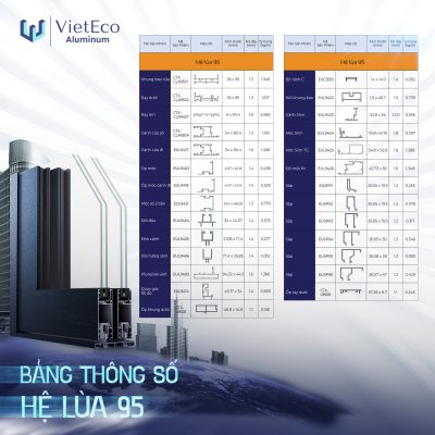 ⭐ Chất lượng tiêu chuẩn Châu Âu: Nhôm Việt Eco hệ lùa 95 Class A có thiết kế rãnh C theo tiêu chuẩn châu Âu.